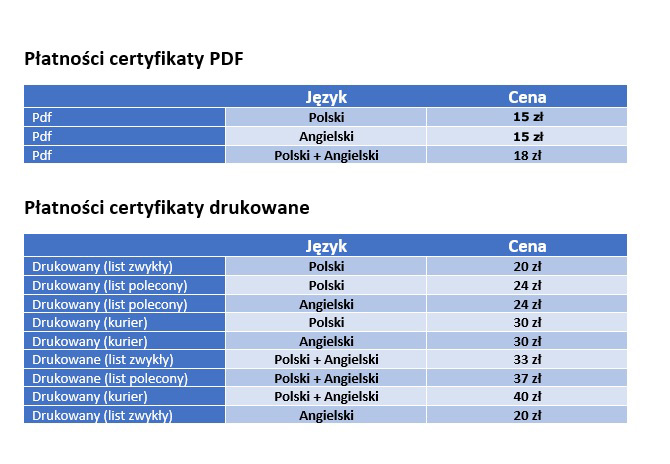 wpisz tytuł szkolenia oraz imię i nazwisko osoby, rodzaj certyfikatu